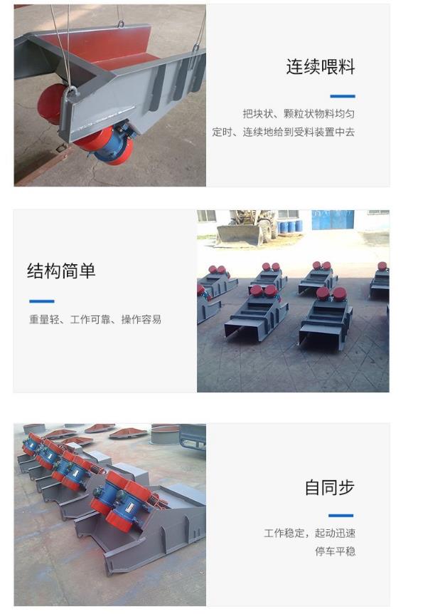3、該機結構簡單,振動平穩(wěn),喂料均勻,連續(xù)性能好,激振力可調;隨時改變和控制流量,操作方便;偏心塊為激振源,噪音低,耗電少,調節(jié)性能好,無沖料現象;若采用封閉式機身可防止粉塵污染。