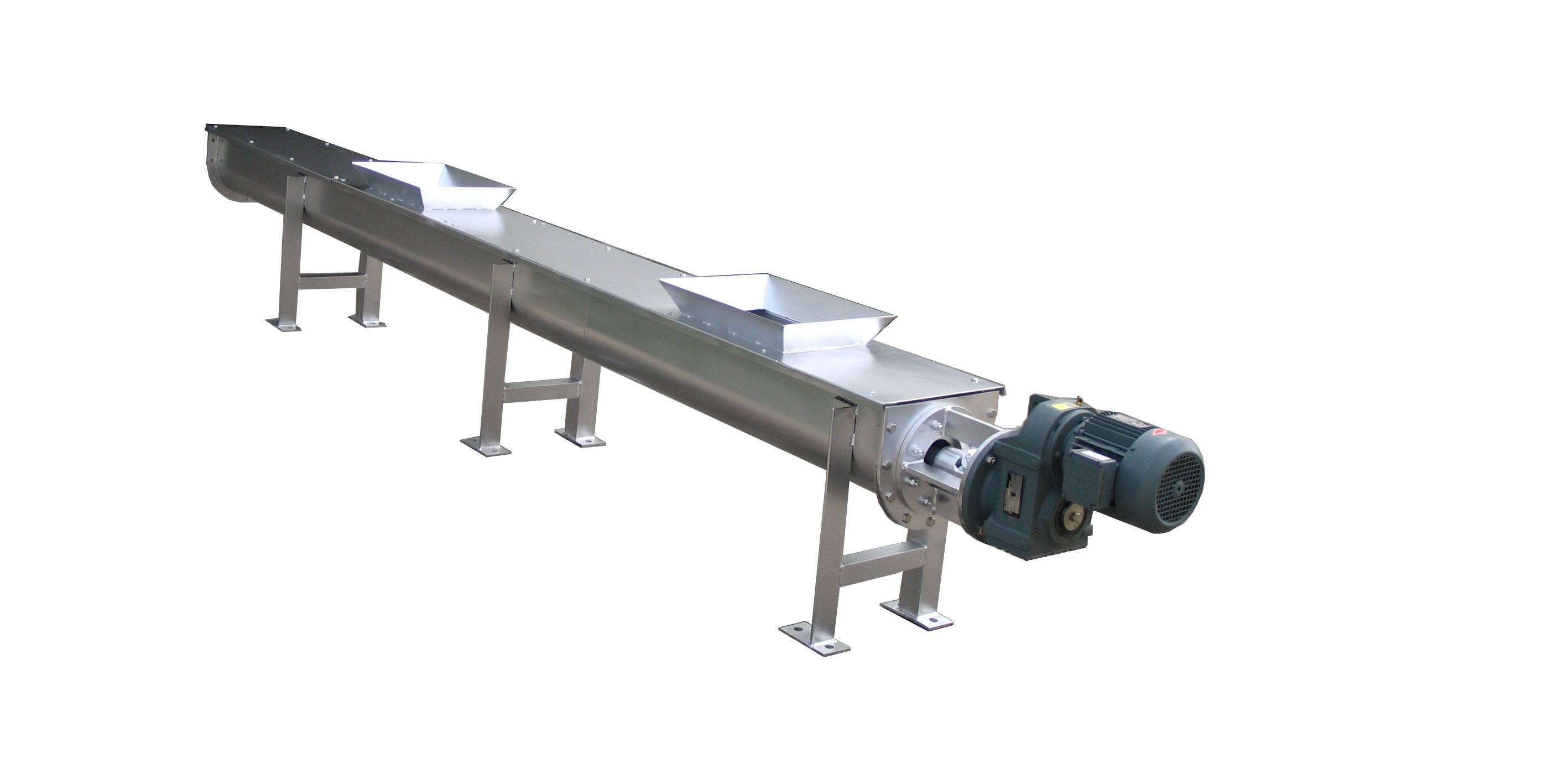 LS型螺旋輸送機是利用旋轉(zhuǎn)的螺旋將被輸送的物料沿固定的機殼內(nèi)推移而進行輸送工作,頭部及尾部軸承移至殼體外,吊軸承采用滑動軸承設(shè)有防塵密封裝置,軸瓦一般采用粉末冶金,輸送水泥采用毛氈軸瓦,吊軸和螺旋軸采用滑塊連接。