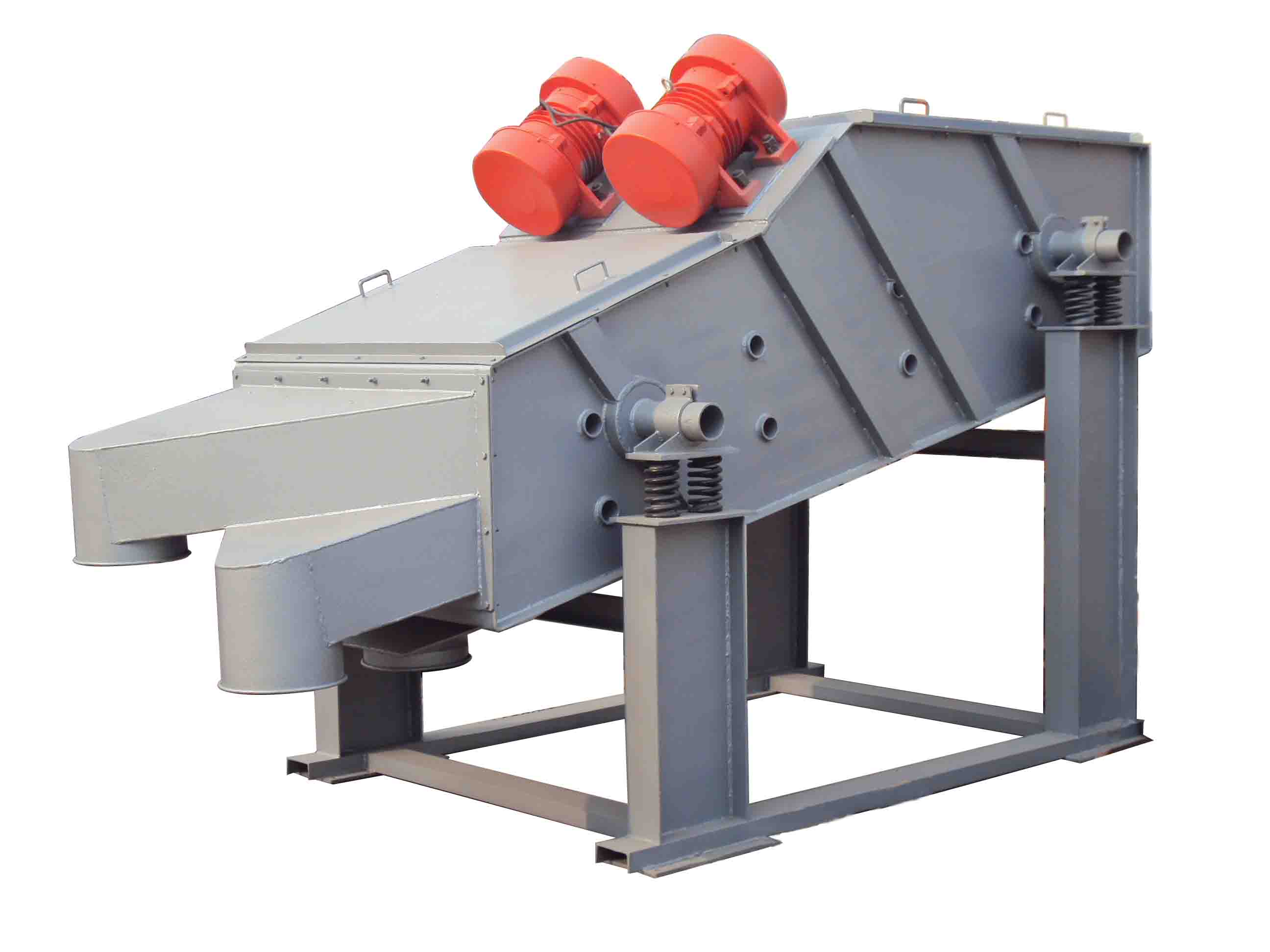 脫水振動篩采用雙電機自同步技術,通用型偏心塊、可調振幅振動器。主要由篩箱、激振器、支承系統及電機組成。通過膠帶聯軸分別驅動兩個互不聯系的振動器作同步反向運轉,兩組偏心質量產生的離心力沿振動方向的分力疊加,反向離心抵消,從而形成單一的沿振動方向的激振動,使篩箱做作往復直線運動。