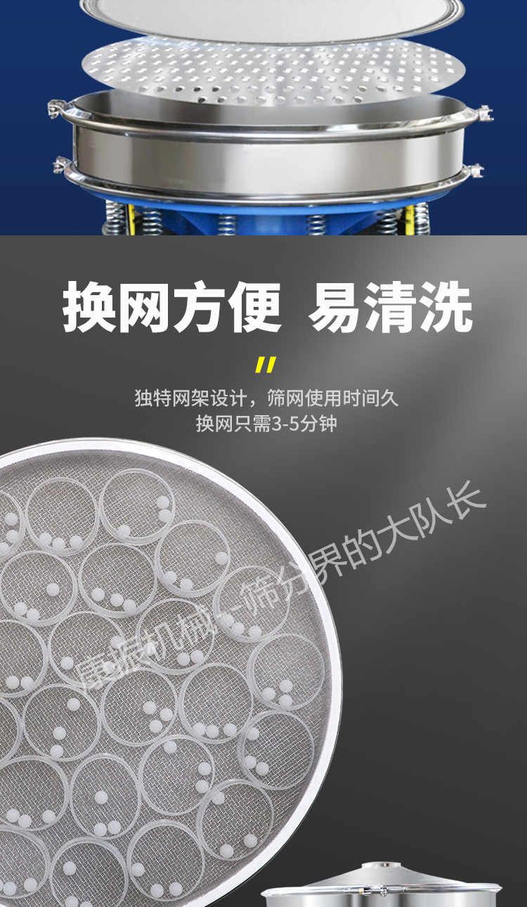 篩網更換便捷—旋振篩根據不同需要有多種網架結構;其中一種把更換篩網的時間降到3~5分鐘,比其他類型篩機節約30~60分鐘。篩網壽命更長,效率更高。